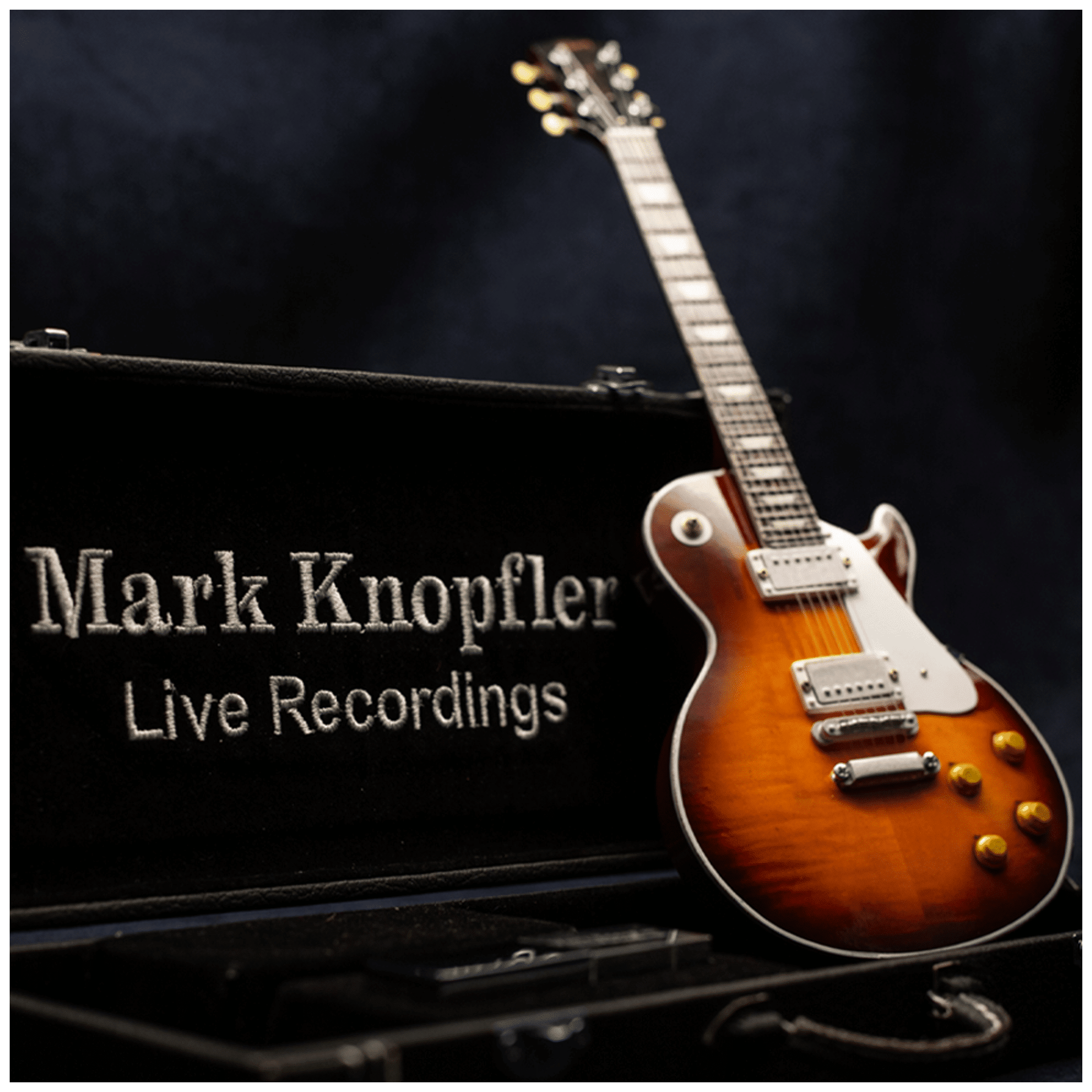 Artisan-crafted and encased in a custom, embroidered guitar case, also to scale, this one-of-a-kind collectible is nestled beside a 32 GB ‘Mark Knopfler’ engraved USB key which includes ‘best of’ recordings from the following Mark Knopfler tours: Shangri-La (2005), Get Lucky (2010), Privateering (2013), Tracker (2015) and Down The Road Wherever (2019). In addition, you will also receive downloads of your choice from five shows from the MarkKnopfler.com tour archive.